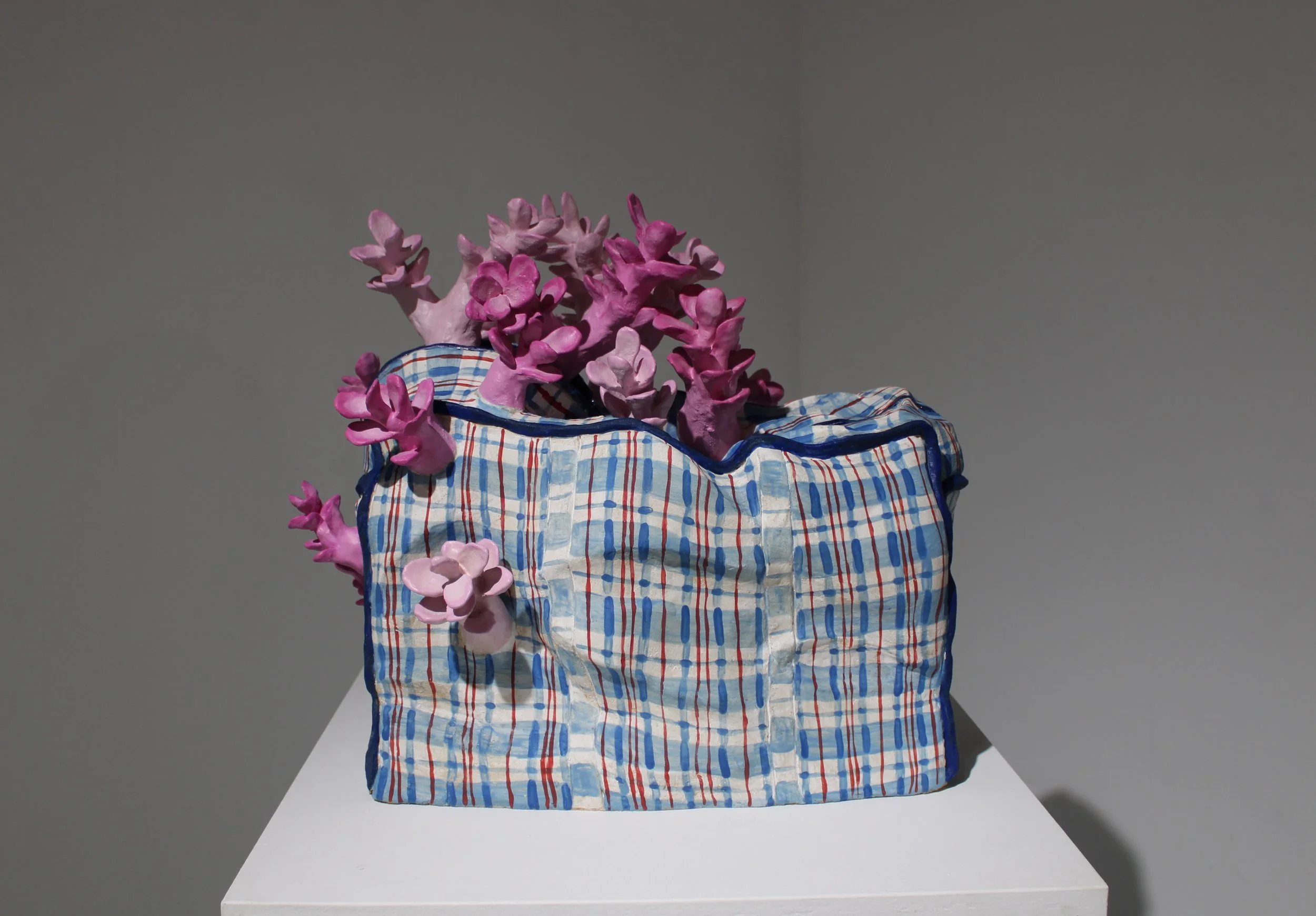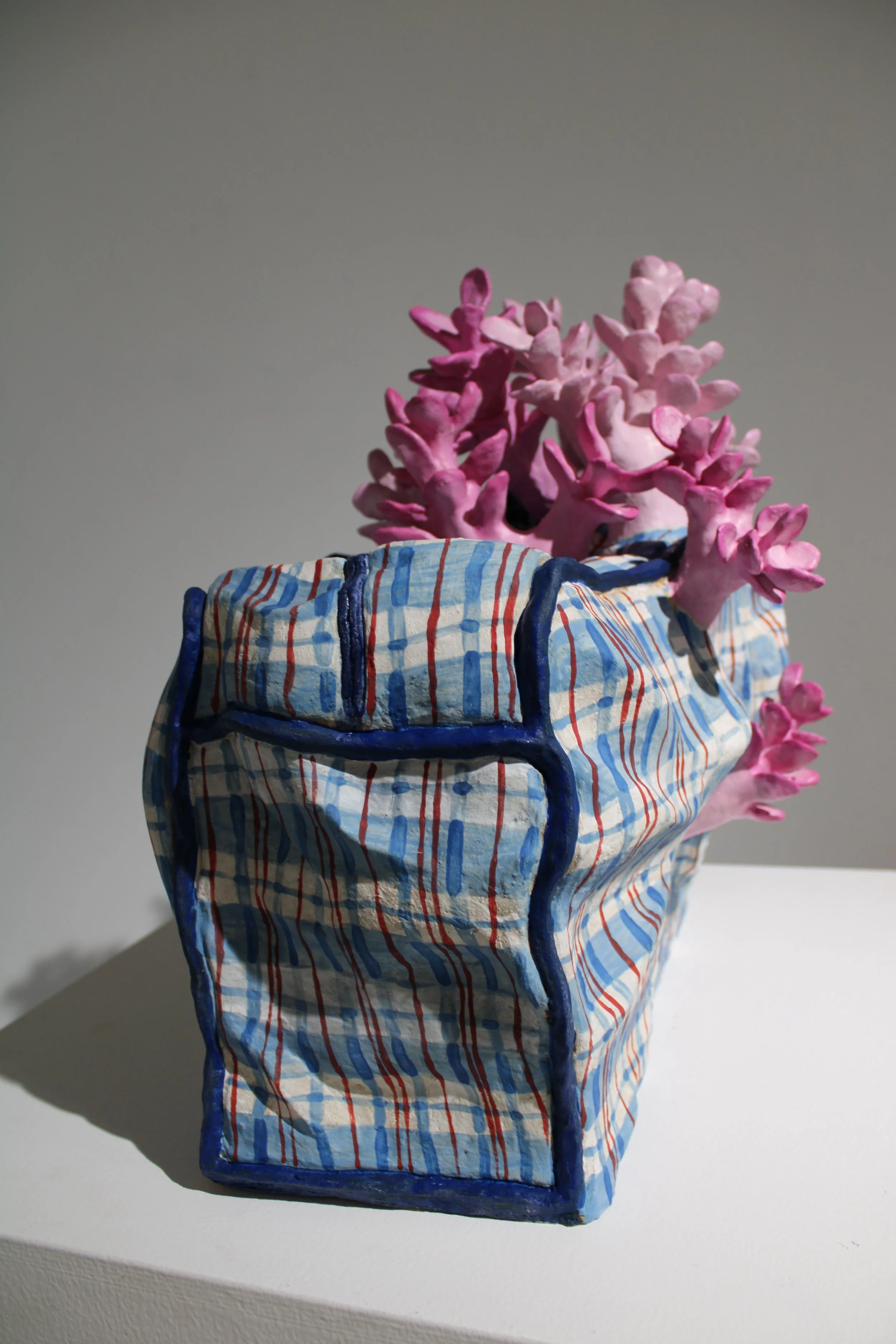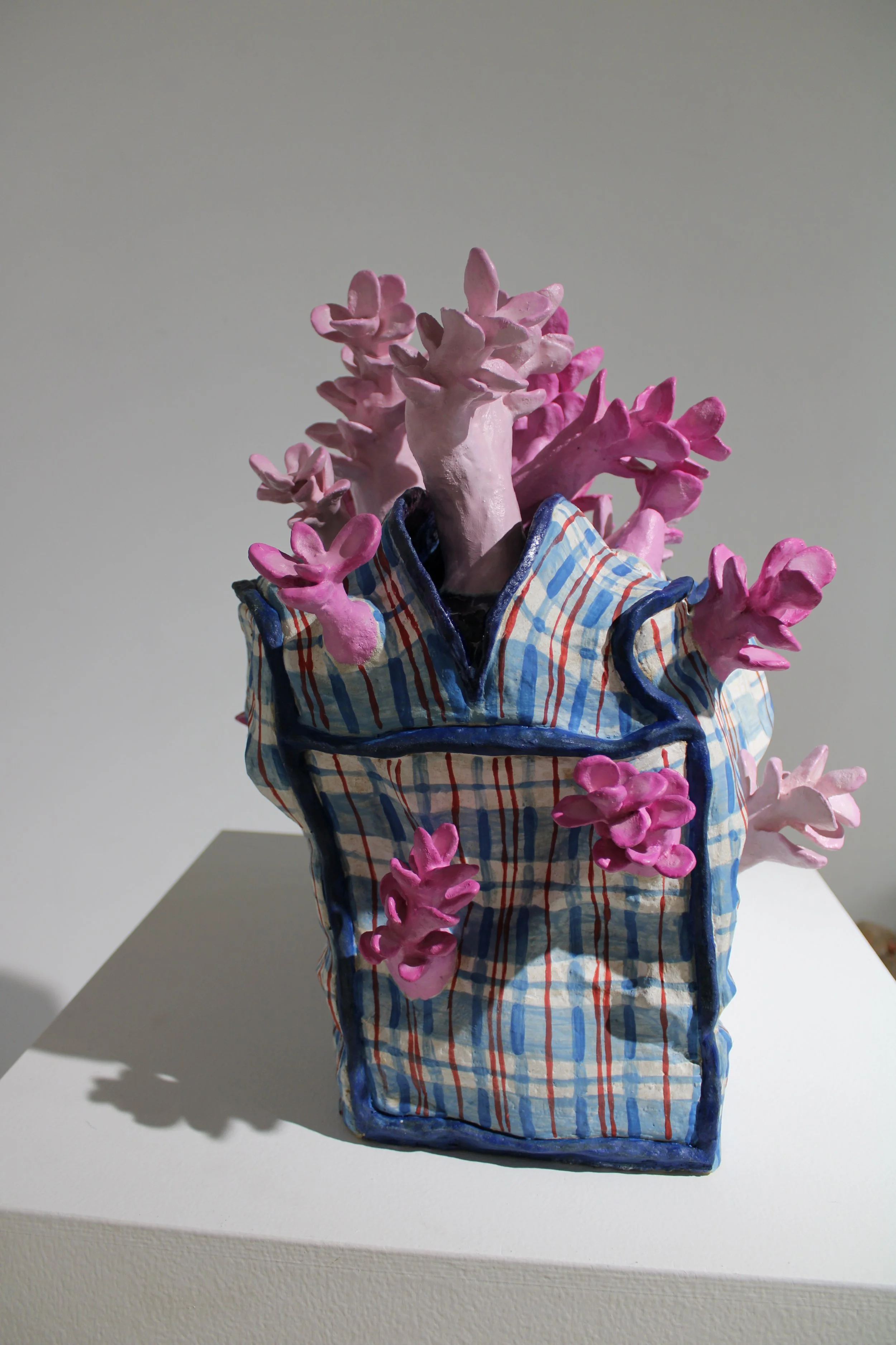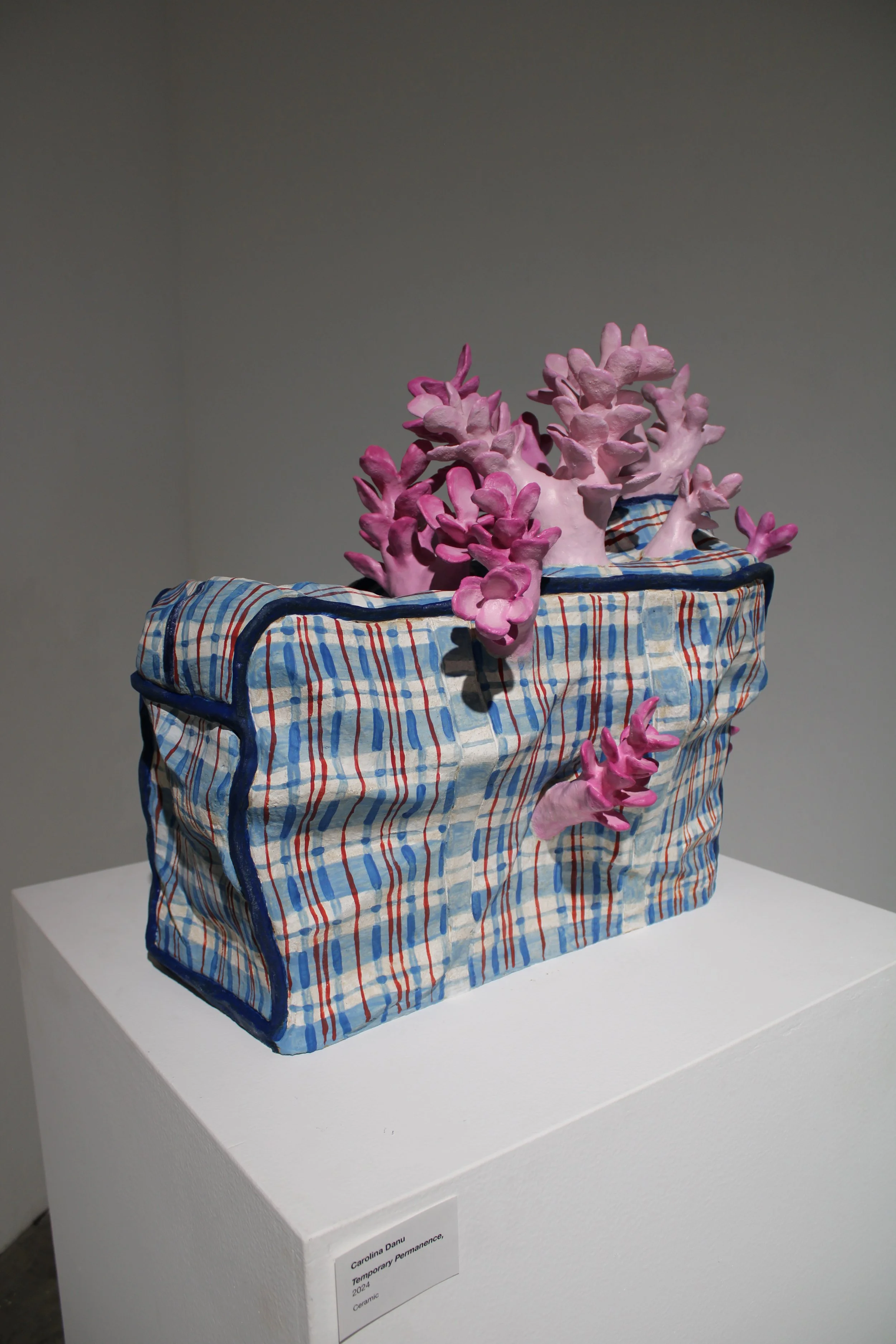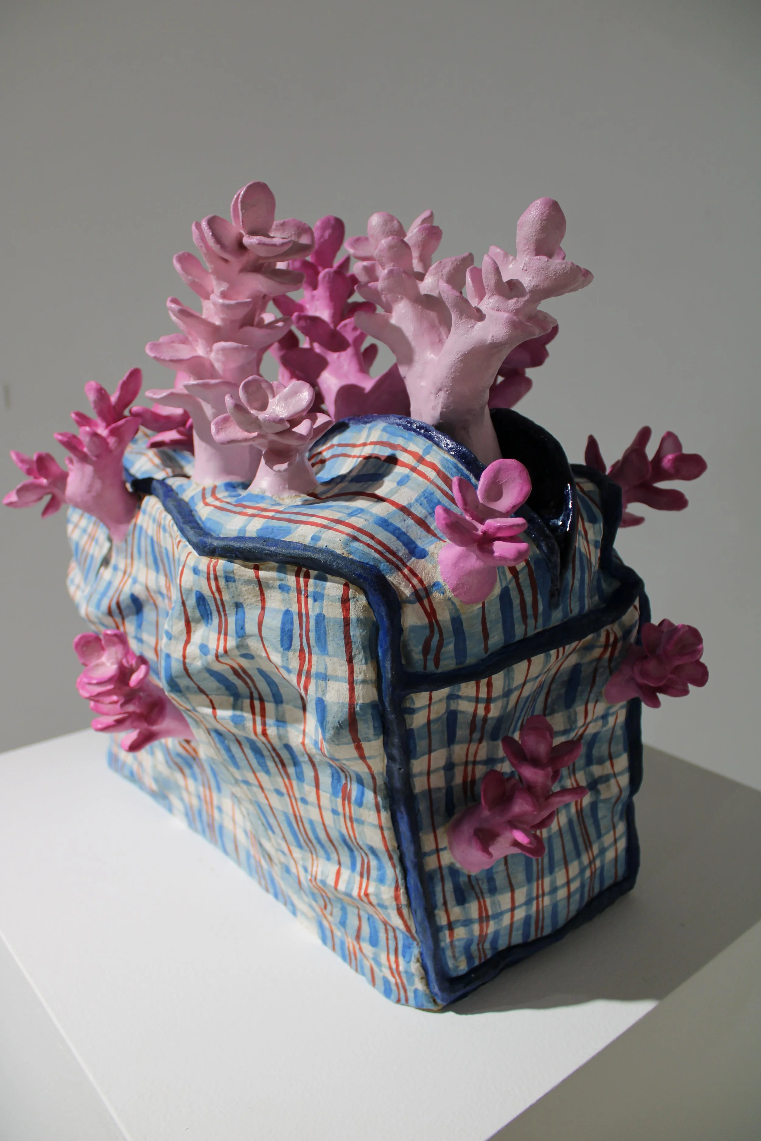 Permanent Impermanence, 2024; oil paint and underglaze on ceramic. Approx. 20x24x10in
